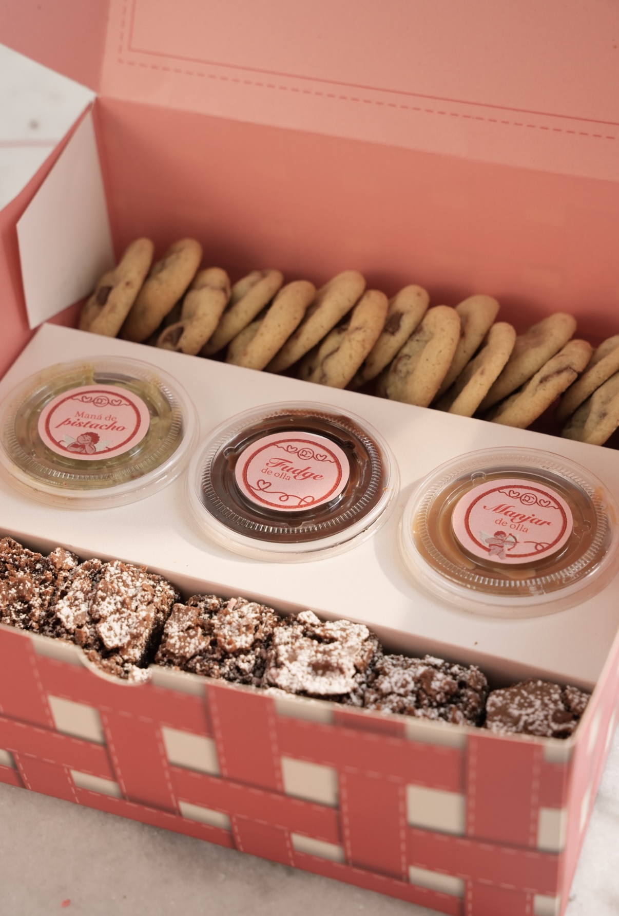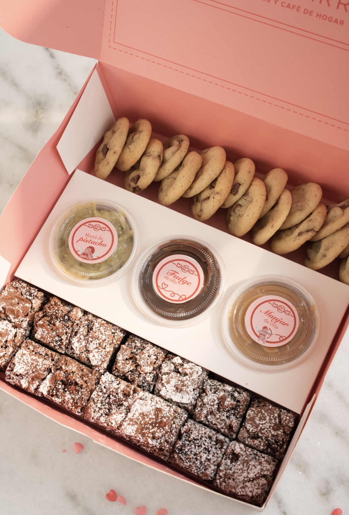 Un bucket pensado para compartir, incluye 14 mini brownies y 17 mini galletas chocochips.