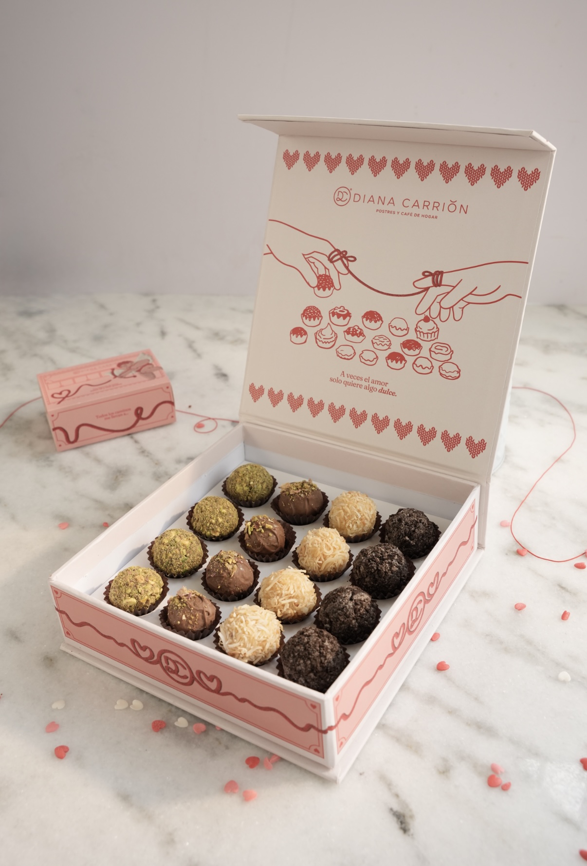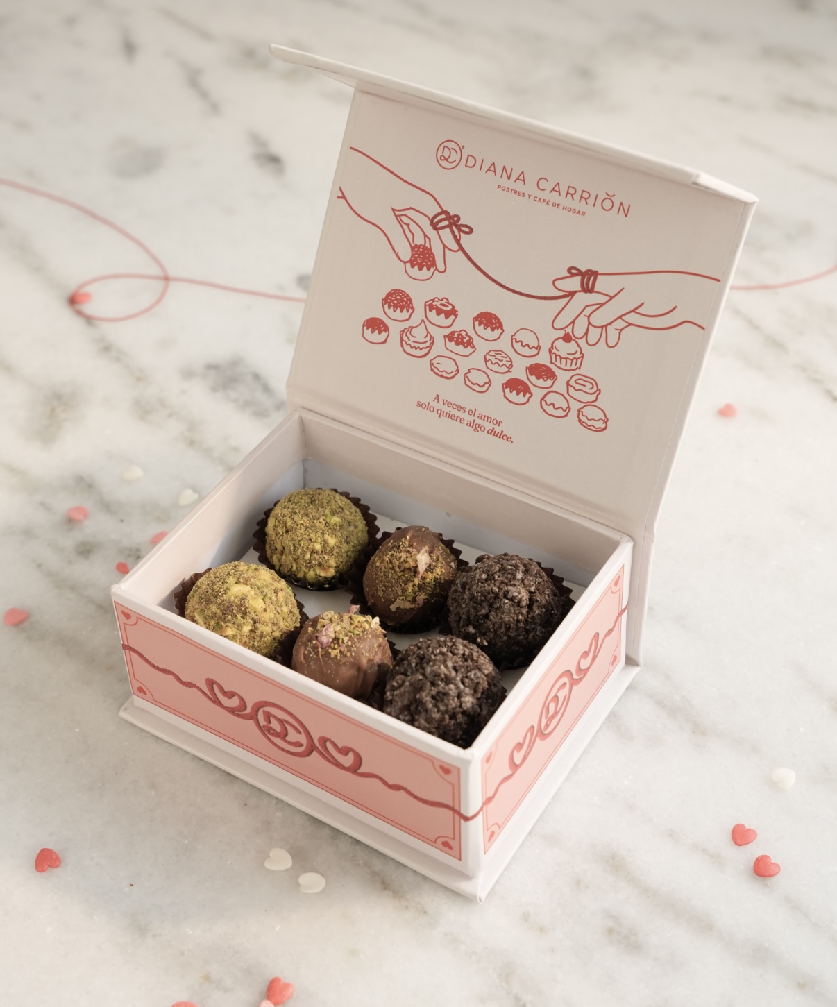 - Premium: trufa de pistacho acaramelada, trufa de cookies and cream, trufa de coco acaramelada, trufa dubai