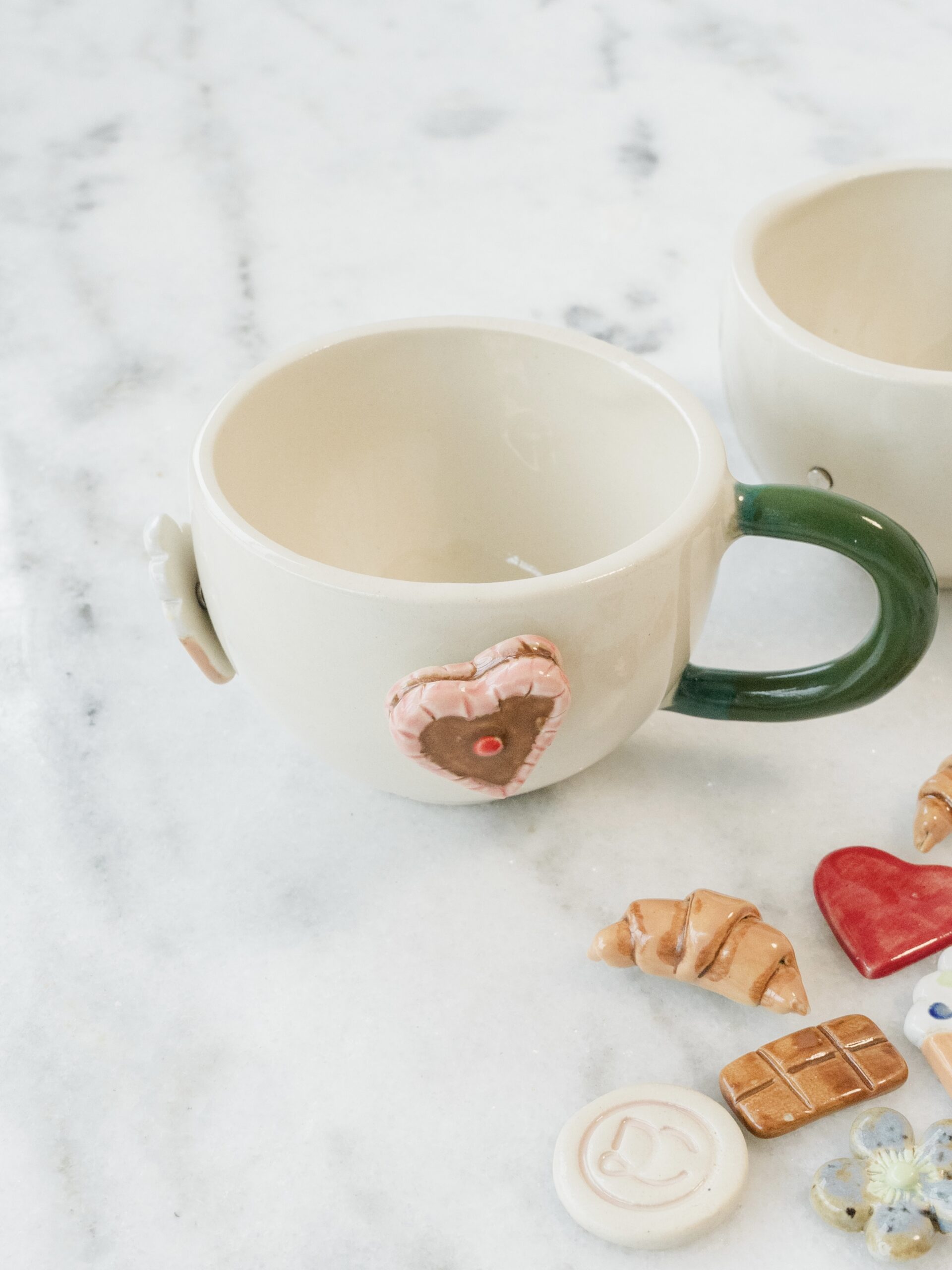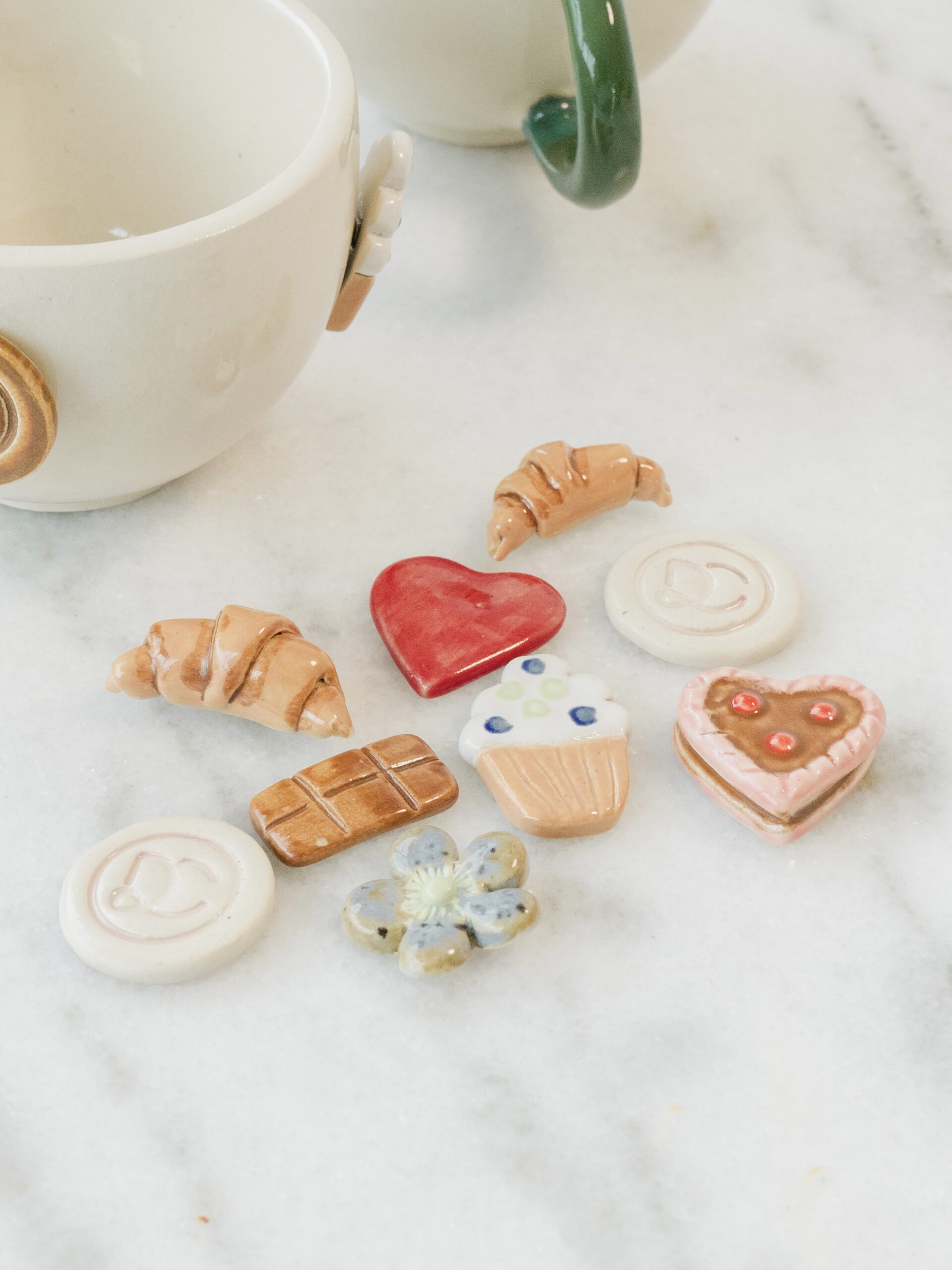 Nuestra taza de cerámica con charms intercambiables viene con un sistema de imanes que te permite colocar y cambiar los charms cuando quieras. Así puedes personalizarla y hacerla tuya, según la temporada o tu mood ✨