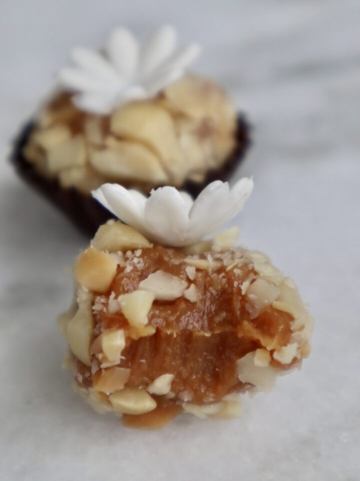 Maná de salted caramel artesanal, cubierta con macadamia tostada. Cremosa, delicada y perfectamente balanceada: el bocado ideal para los amantes del dulce con un toque especial.