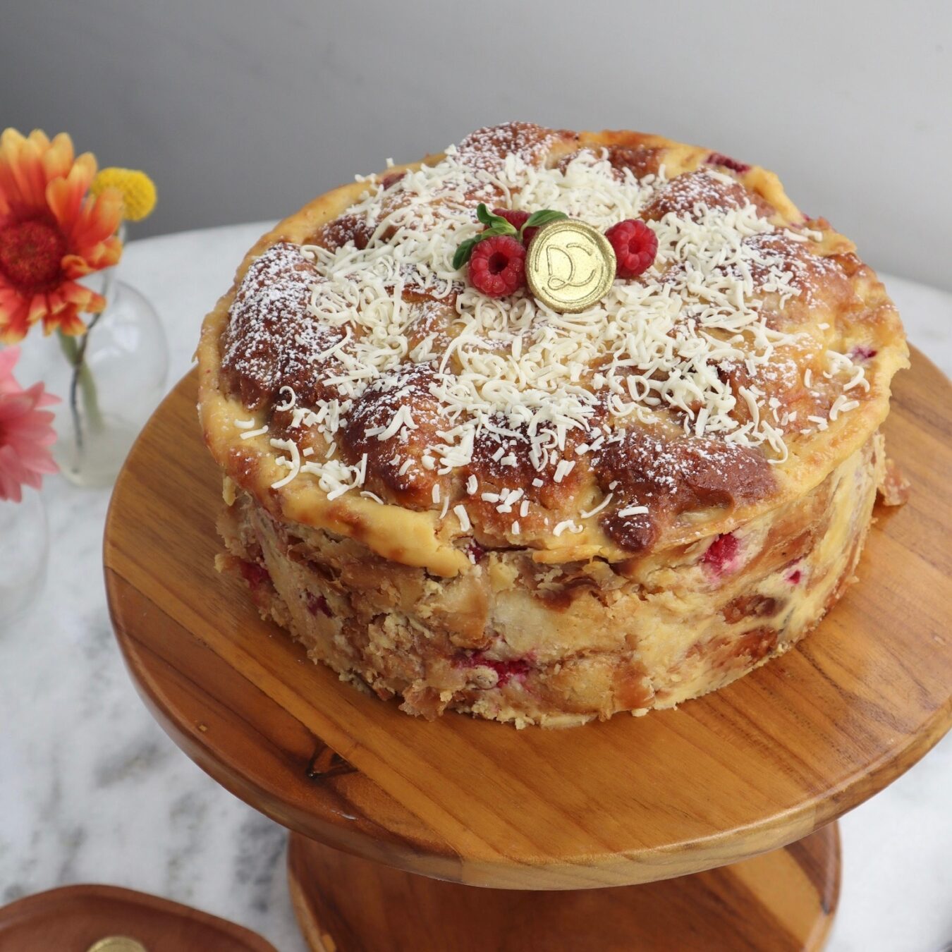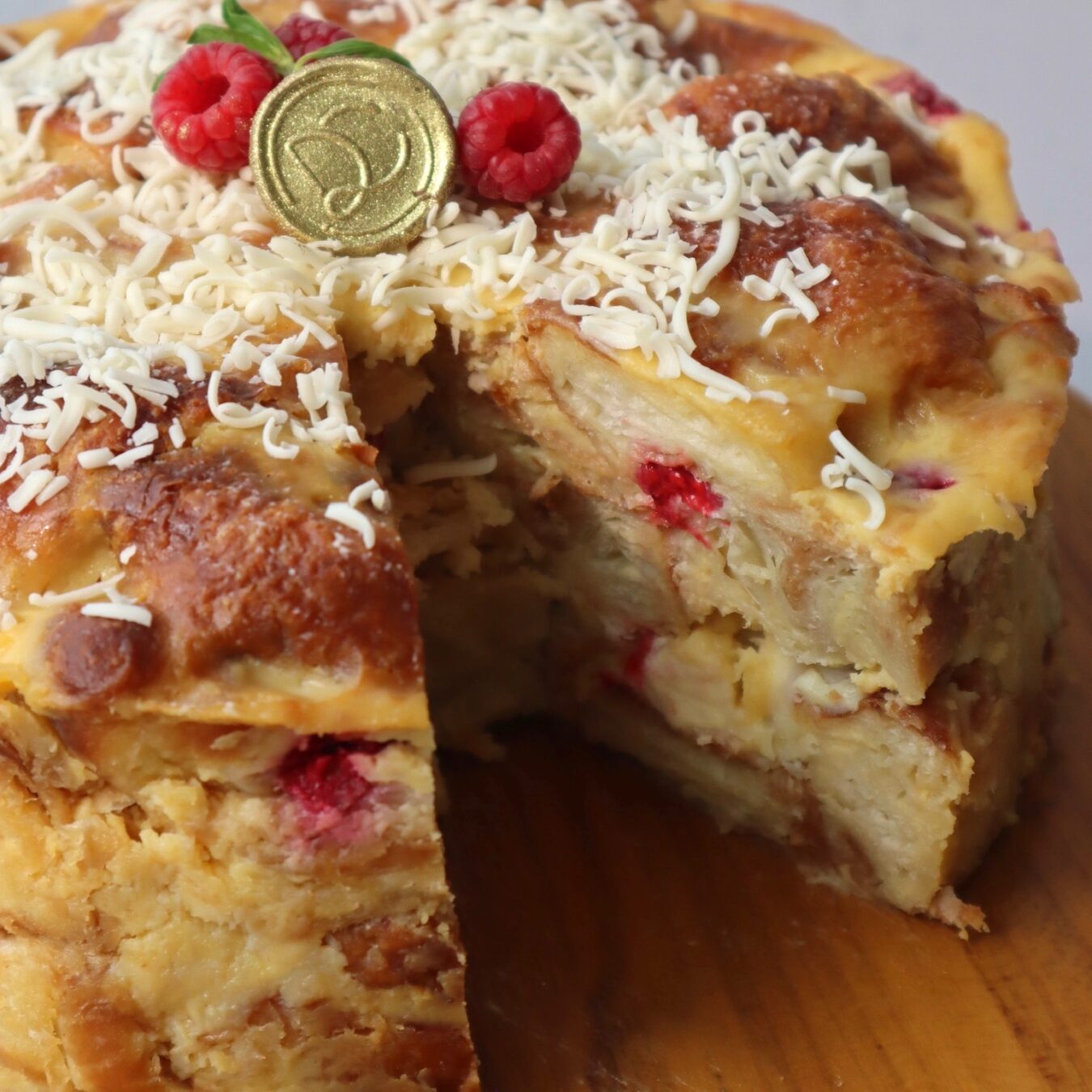 Budín de Croissant, Chocolate Blanco y Frambuesas