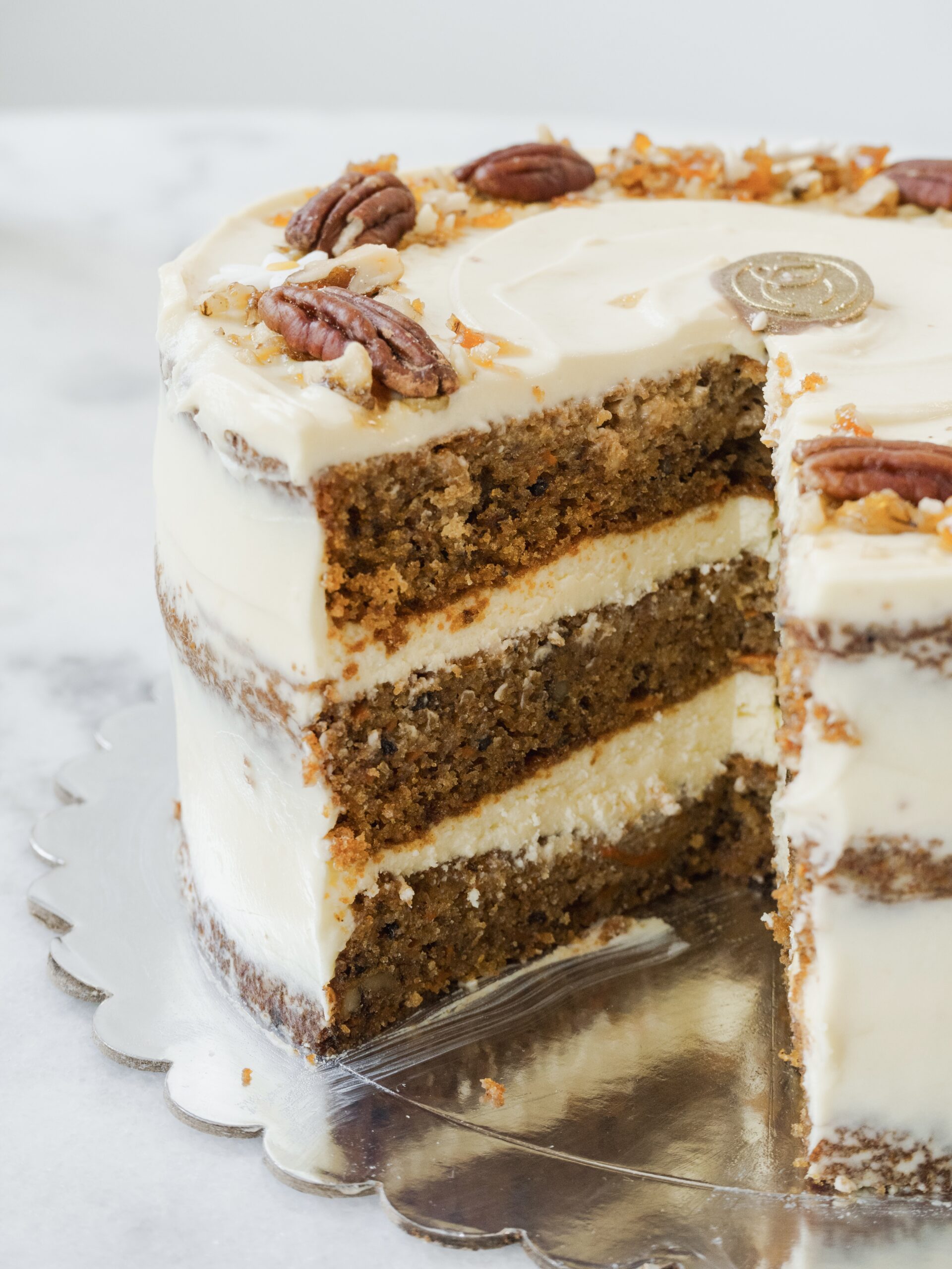 Nuestro clásico carrot cake especiado relleno de frosting de cream cheese.